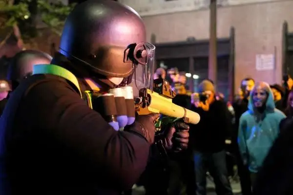 شلیک گلوله حاوی فلفل به چشم یک معترض در لس‌آنجلس
