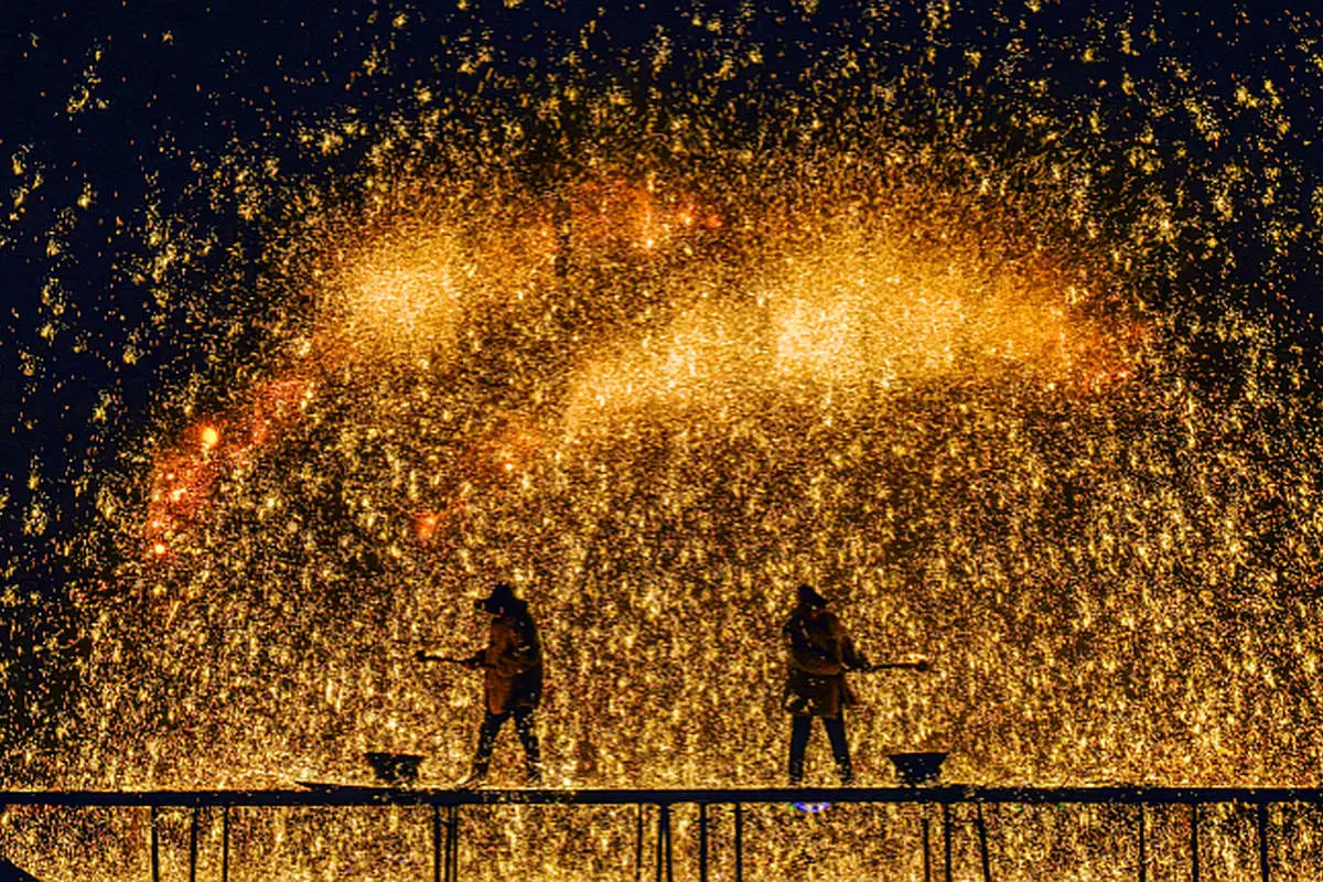 «گل آهنین» که بیش از ۵۰۰ سال پیش در شمال چین شکل گرفت نمایشی است که در آن آهن مذاب به جای آتشبازی به آسمان پرتاب میشود و با جرقههای واقعی فلز گداخته، صحنهای خیرهکننده را رقم میزند.